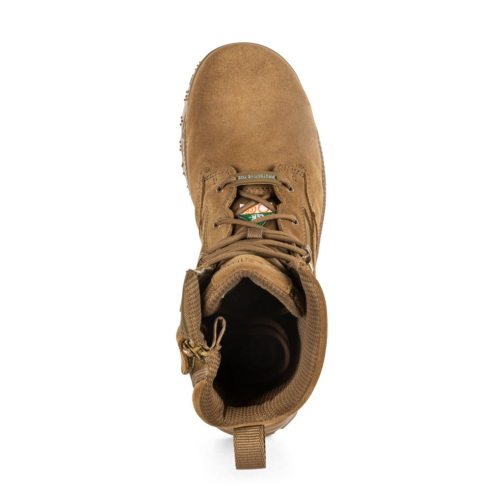 A renowned 5.11 Tactical boot steps up its profile with heightened performance and comfort. The A.T.A.C. 2.0 8 Shield lightens things up but remains serious about delivering superior safety in the most unforgiving environments. An added 5.11 SlipStream™ waterproof / bloodborne pathogen* membrane, Carbon-Tac safety toe, and a puncture resistant board provide critical protection. Full-length dual durometer Ortholite® footbed works to keep your feet cool, dry, and comfortable all day every day. Another addition, the Achilles heel flex zone, gives a critical part of your foot more range of motion without compromising support and stability. Imported.