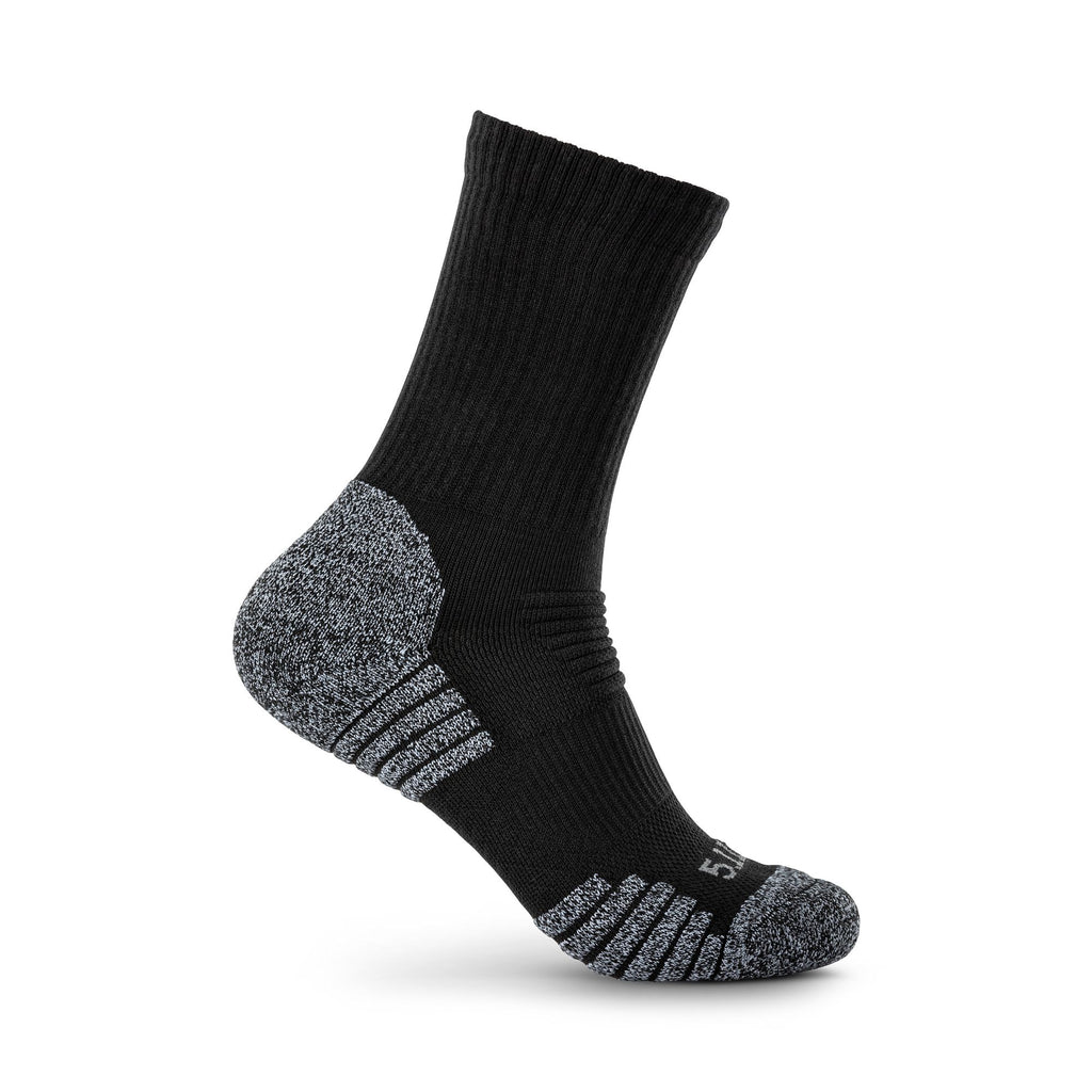 Our most performance-oriented and professional-grade sock, the Duty Ready Ultra Crew features our proprietary low-friction 5.11 SlipStream™ yarns for all day comfort. With a no quit upper cuff and breathable mesh knit, these socks stay in place while their high quality cushioning and support offer unmatched comfort. Socks feature anti-odor properties and moisture-wicking.