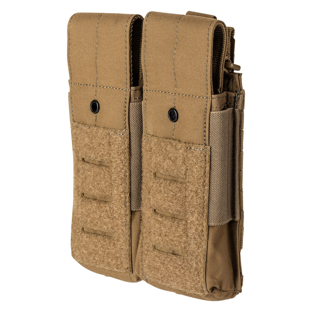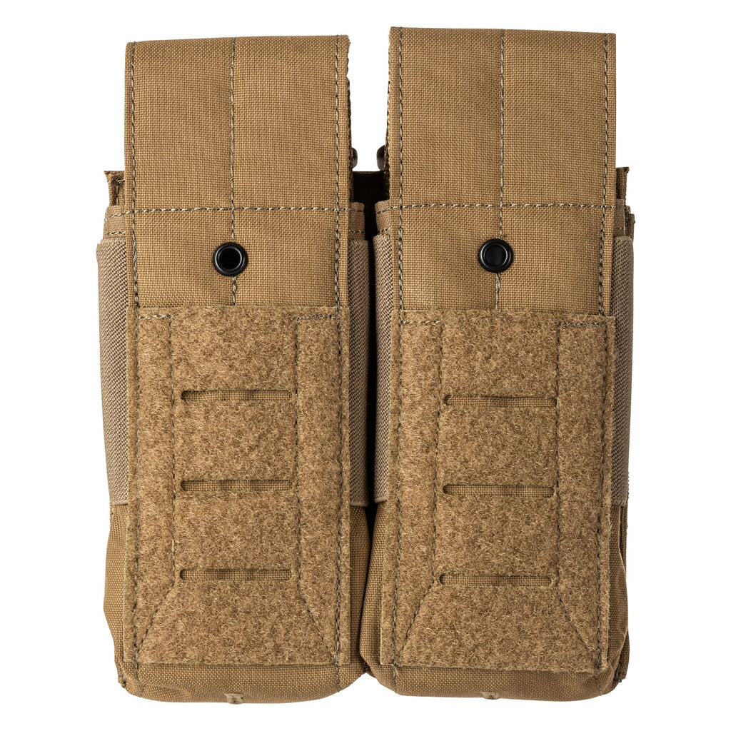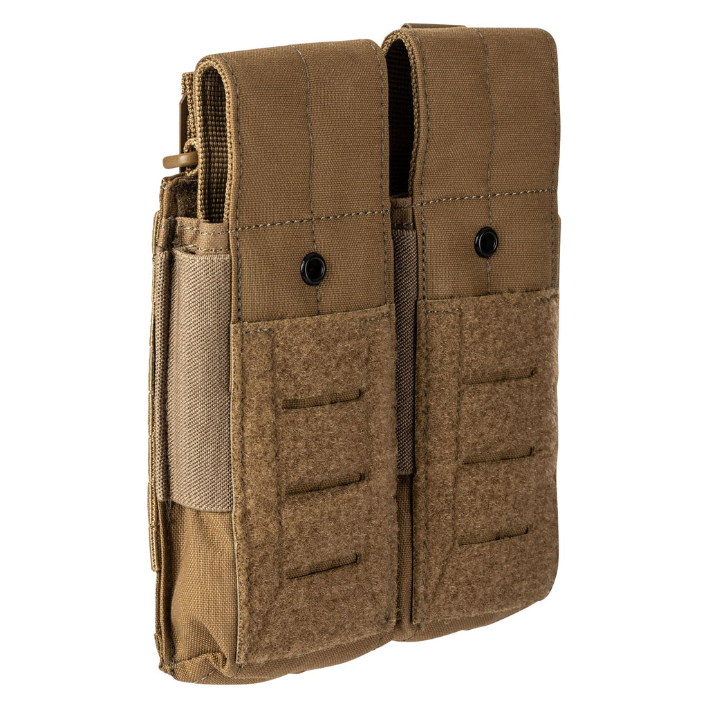 The Flex Double AR Mag Cover Pouch for two times the fun. Built with Flex-HT™ technology for mounting versatility and easy weaving to all platforms. Made from tough 500D nylon including a double layer on the front and bottom for increased durability. Alternately, the Pouch Bungee Kit (sold separately) can be added by securing the cover flap on the front of the pouch. The fine details have not been forgotten with a drain hole in the bottom panel, Duraflex® G.C. snap, and a 500D nylon webbing cover with a Hypalon® pull tab. The sides are designed with elastic compression that allows for quick and secure mag changes.