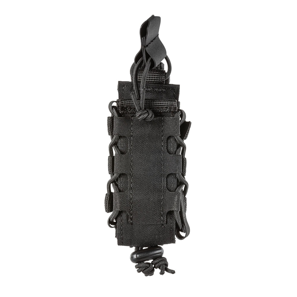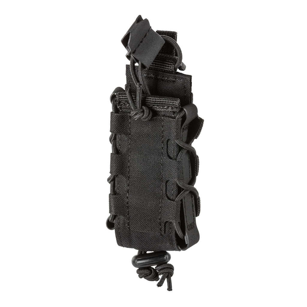 The Flex Single Pistol Multi Pouch has our patent pending adjustable side panel bungee cord lock system for various pistol mags or other EDC tools. Flex-HT™ technology provides mounting versatility and easy weaving to all platforms with waterproof TPU coated straps. The front and bottom panels are double layered with 500D for extra durability. An alternate top bungee retention system is included.