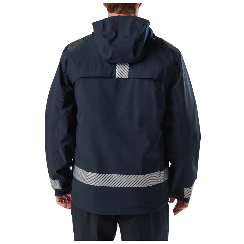 The Responder Parka™ 2.0 embodies the Always Be Ready® way. Hunker down with 10k/10k performance in a 2L hardshell fabric. Adjustable hem with internal shock cord system, articulated sleeves with adjustable cuffs, and fully seam-sealed protection. The shoulders are equipped with anti-slip fabric and the center zipper seals you in with external and internal storm flaps and chin guard. All you need to stay warm when the weather’s not. Our Quixip® technology has been added to the side seams for quick firearm access and ventilation. Updated with Tac Dry® Waterproof Breathable + BBP resistance and equipped with 3M® Scotchlite® reflective tape for extra protection and safety. Mic/camera loops on the outside, loop platforms for name tape on the chest and back, and hood that can be stored inside the collar all provide extra convenience. There are plenty of pockets on the chest and sleeves to keep everything you need close at hand. Zip-in compatible with the 5.11® Tactical Fleece Jacket for added warmth.