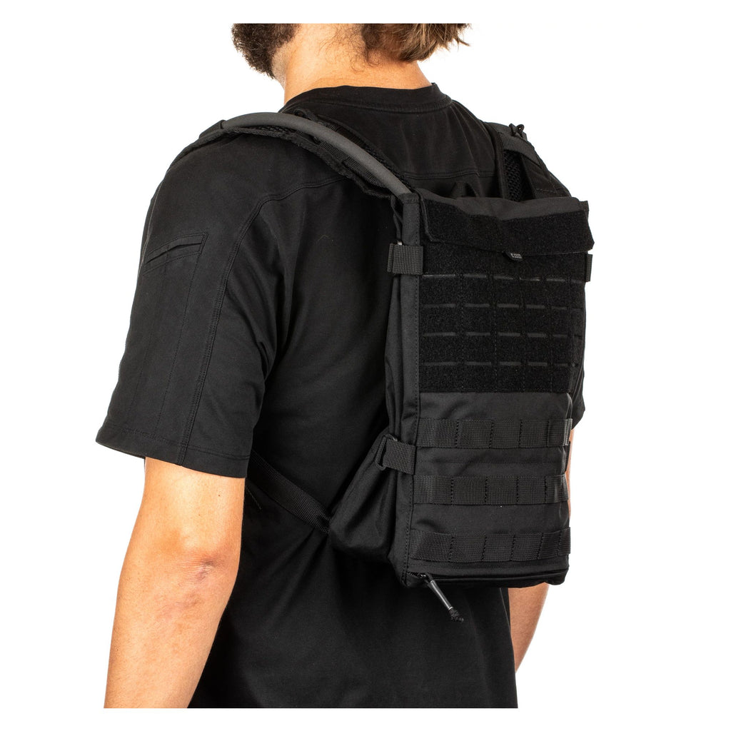 The PC Convertible Hydration Carrier holds up to a 3-liter hydration reservoir with additional space for other essential gear. Designed to work with all 5.11® Plate Carriers, the All Missions Rig and any MOLLE platform, this versatile hydration carrier converts from a plate carrier configuration to a MOLLE pouch to a backpack. Simply use the built-in attachment straps with the plate carrier flap or removable tier straps (included) for plate carrier or MOLLE platform attachment or untuck the mesh shoulder straps and waist strap for backpack configuration. Side compression tabs keep the cargo compact, while the shove-it mesh panel deploys to stash your helmet and other gear. Loop laser-cut and web MOLLE platform provide pouch or bungee cord attachment. The PC Convertible Hydration Carrier fits the 5.11® WTS Wide 3L Hydration System. This is one hydration carrier you’ll be happy to haul. Imported.