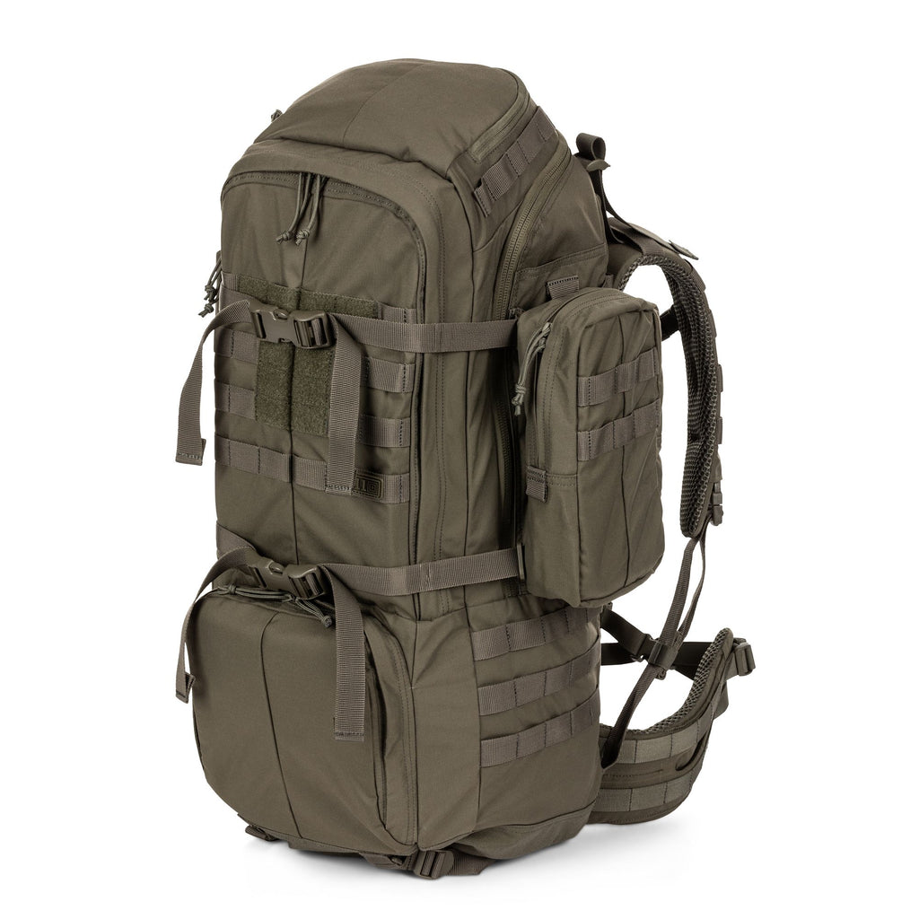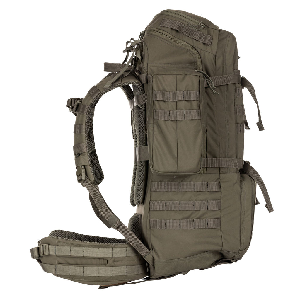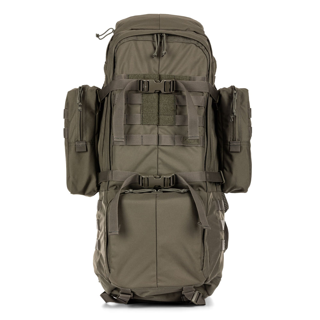 Our first true deployment bag features the kind of versatility men and women in uniform deserve. The heavy-duty construction allows the hydration-compatible RUSH100™ to thrive in hostile environments, yet its modularity is the ideal response to fast-changing situations. Side pouches can be quickly detached and converted to a shoulder bag for effortless gear deployment. A first-grabs pocket keeps readily needed items quickly accessible and includes a fleece-lined eyewear pocket. Comfort is ensured for your heaviest loads by a padded, removable load-bearing waist belt, which keeps weight loaded on the hips and your essential survival gear close by. The adjustable shoulder straps with load lifters and a sternum strap keep things aligned on long hauls and dual compression straps with Duraflex® Autolock buckles ensure everything is tight. The custom flat aluminum frame provides rigidity, ergonomics and load transfer while the horizontal fiberglass rods provide torsional rigidity.