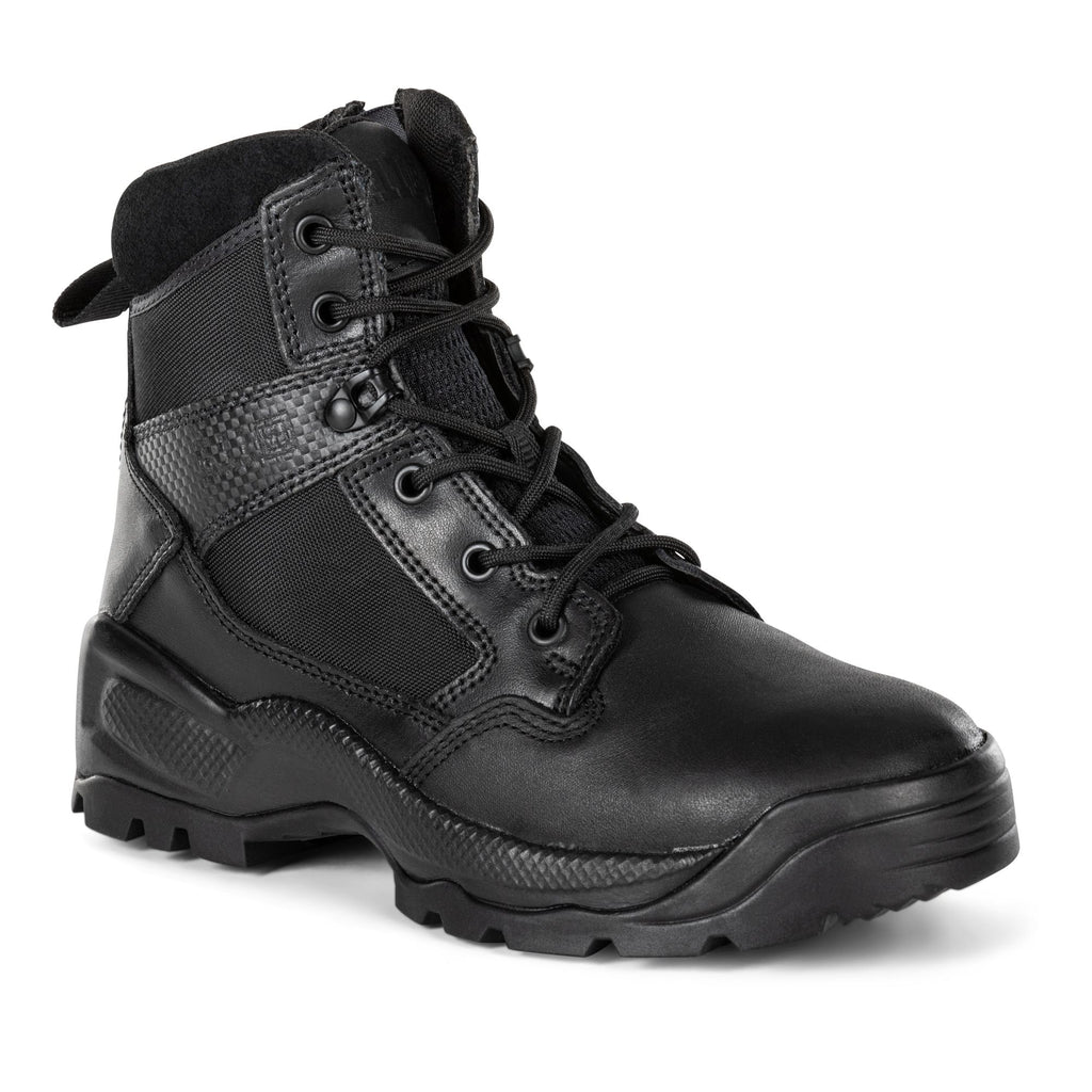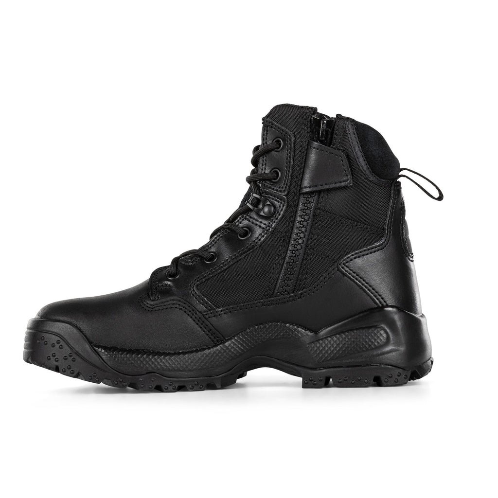 The boot worn by the world’s leading public safety personnel in a 6 height with side zip, the 5.11® A.T.A.C. 2.0. It’s lighter and more comfortable, yet maintains its reputation for toughness and durability. A new air flow tongue and full-length dual durometer Ortholite® footbed work to keep your feet cool, dry and comfortable all day, every day. Another new feature, the Achilles heel flex zone, gives a critical part of your foot more range of motion without compromising support. The full-grain leather toe, 840D nylon upper and Shock Mitigation System® provide the kind of rugged protection you need. Imported.