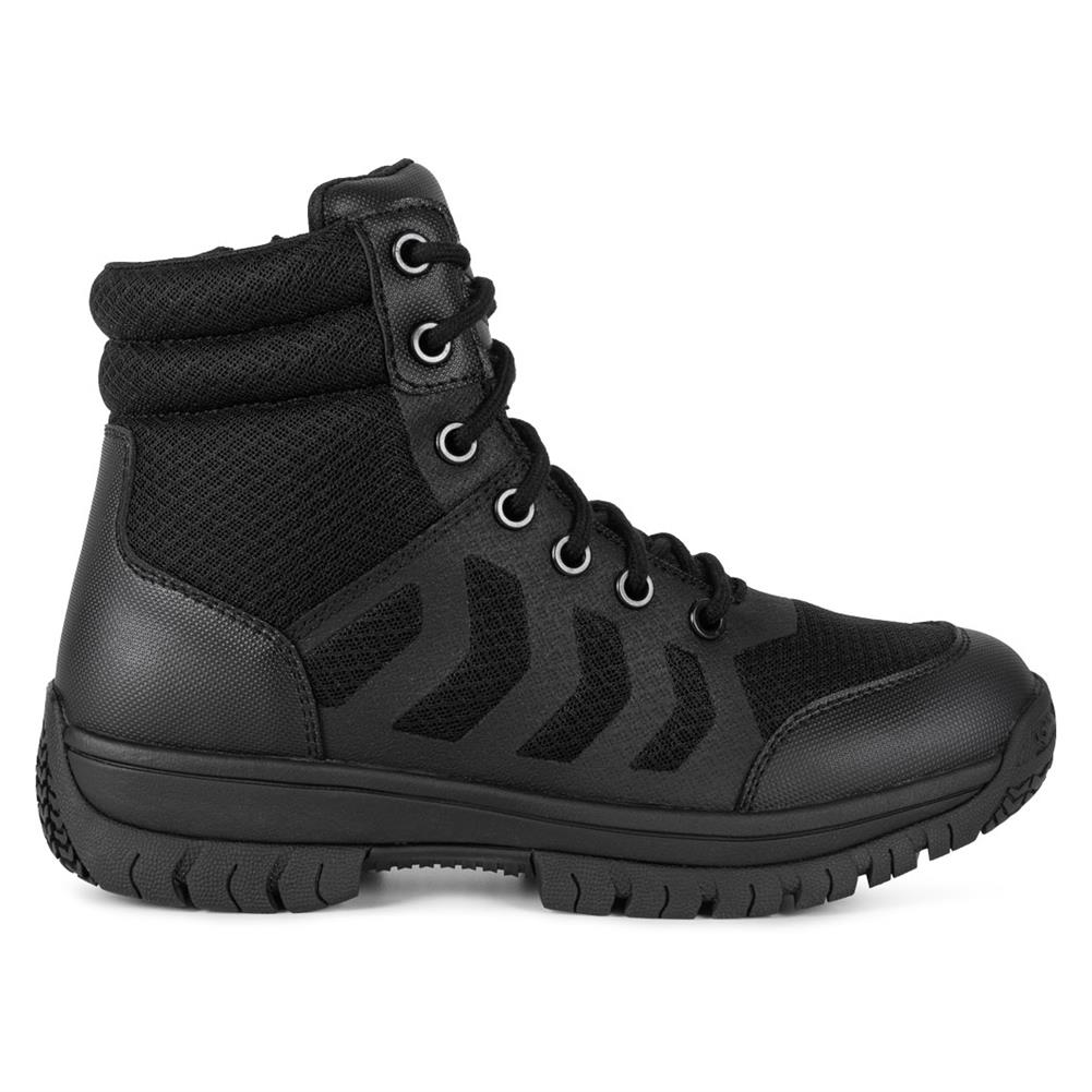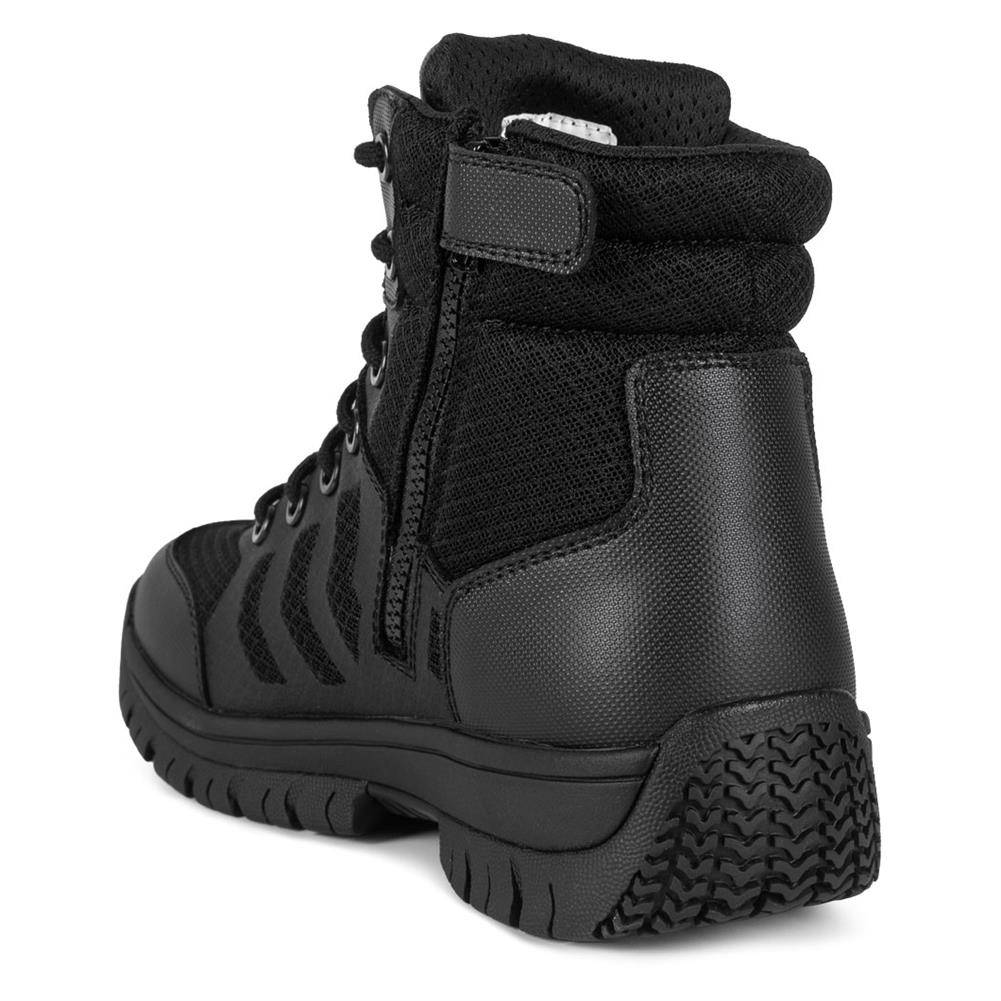 The Mission Made Men's 6" Tactical Side-Zip Boots are crafted for comfort and functionality in tactical operations. Designed with a supportive EVA midsole, durable rubber outsole, and a dual-density insole, these boots offer outstanding comfort for long shifts. With a 6-inch height and side zipper for easy on/off, these boots provide flexibility and secure wear for professionals in demanding environments.