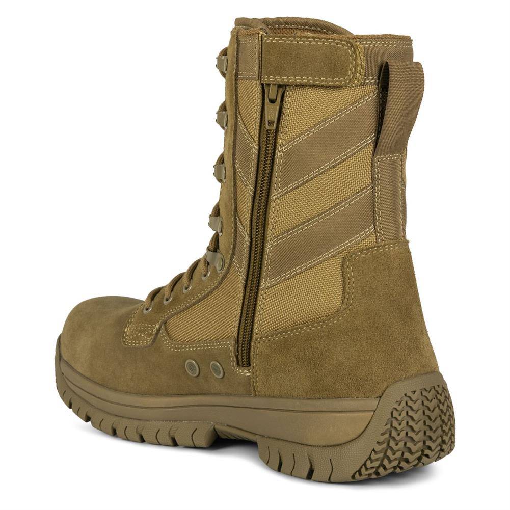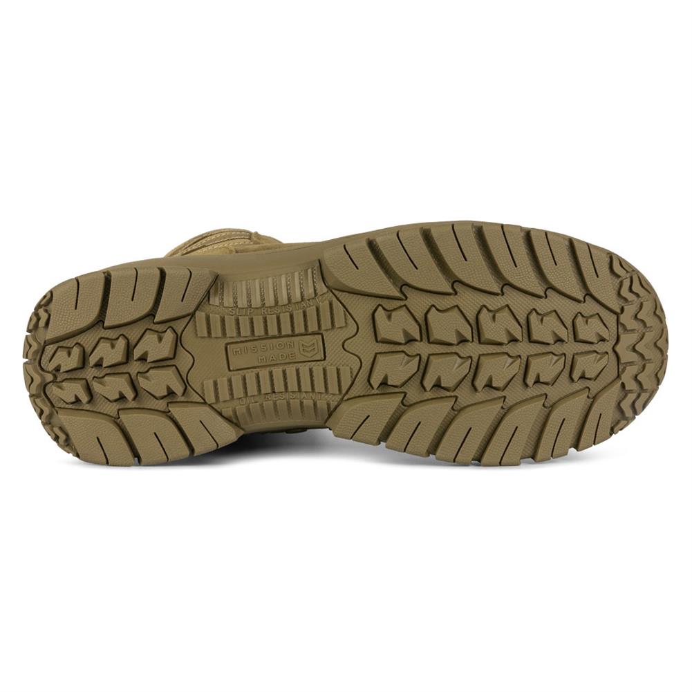 Stay mission-ready with the Mission Made Men's 8" Side-Zip Composite Toe Combat Boots. Designed for tactical professionals, these AFI 36-2903-compliant boots deliver durability, comfort, and protection. The composite toe is ASTM F2413-18 certified, providing essential impact and compression resistance. Built with a robust combination of 1000 denier nylon and suede, these boots also feature a moisture-managing drainage system, a dual-density insole, and an EVA midsole for lasting comfort. The convenient medial side zipper and full lace-up opening offer quick on/off capabilities.