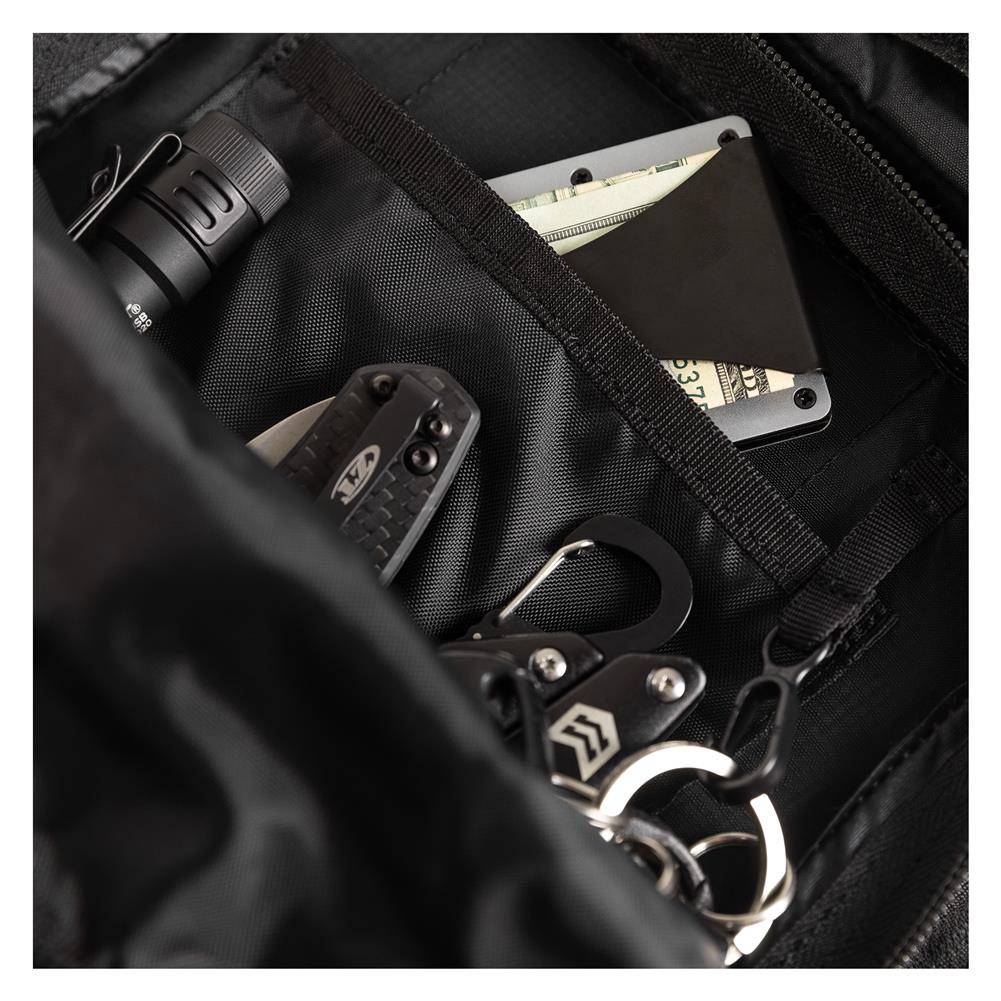 Designed for tactical operations, covert missions, or everyday use, the Mission Made Sling Bag delivers purpose-built storage in a durable, compact form. Crafted from tough 210D nylon ripstop fabric, this bag features three exterior zippered compartments and multiple interior storage options for gear, tools, or concealed carry items. The back panel pocket offers quick access to a sidearm, while MOLLE webbing across the front, sides, and strap ensures customizable loadouts. An adjustable sling strap offers comfortable carry across the chest or back, and rugged zippers stand up to daily use. This bag is ready for anything—EDC, range day, or travel.
