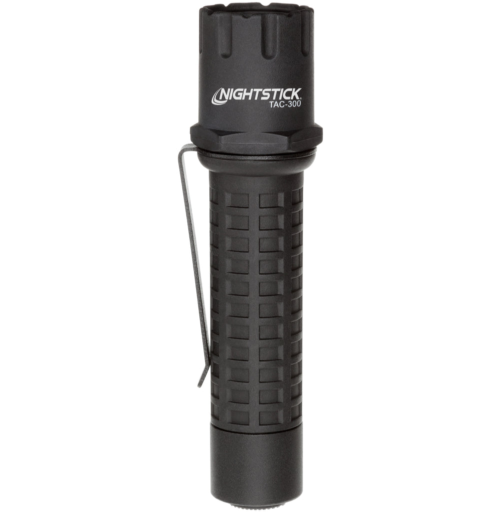 The Nightstick TAC-300 is a 2 CR123 LED Tactical Polymer Flashlight that outperforms most other lights that cost twice as much. With an LED rated at 180 lumens and its high-efficiency deep parabolic reflector, the TAC-300s beam has an effective range of 190 meters (over 620 feet).