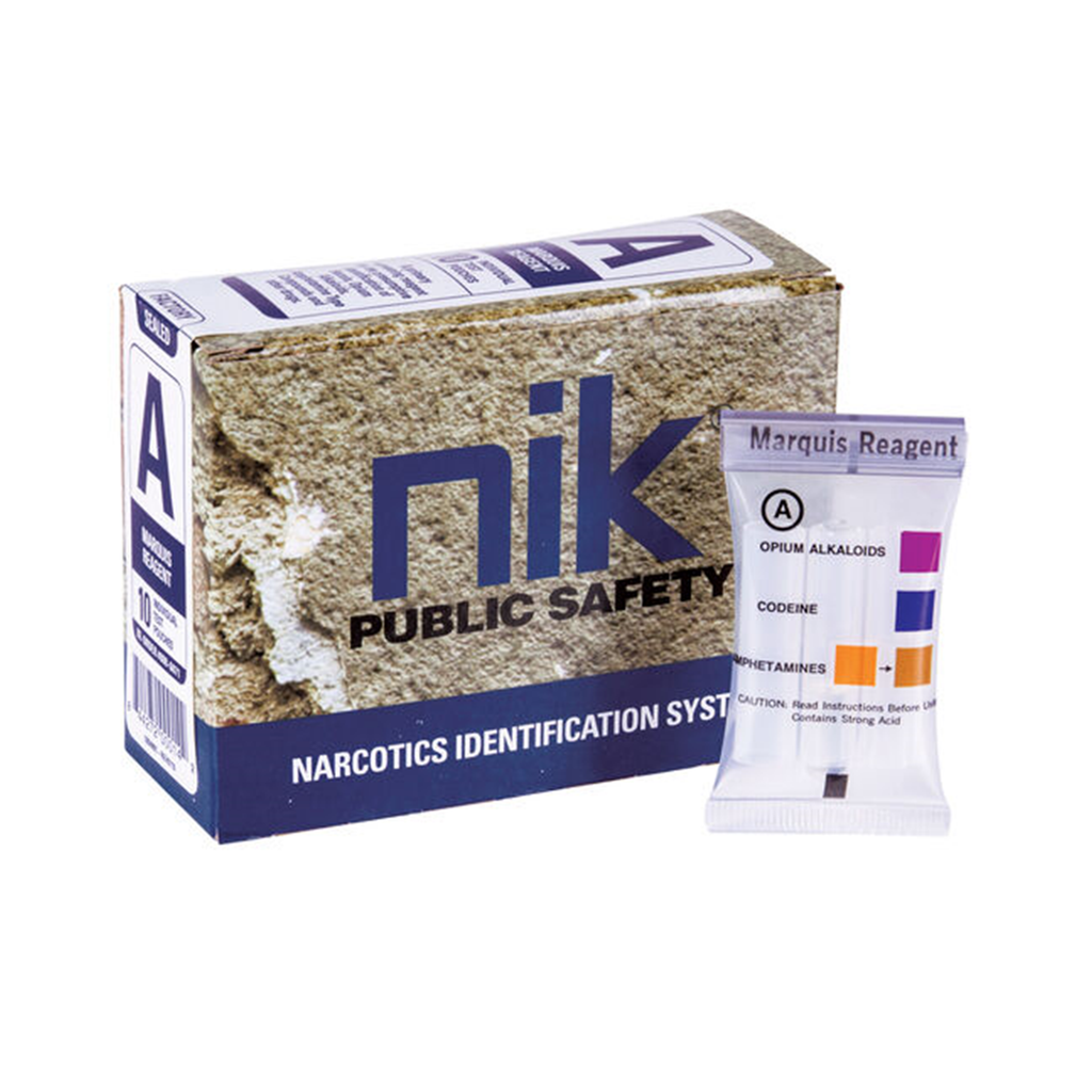 An ideal and trusted solution for Law Enforcement Officers out on-duty! The NIK® Polytesting System was designed to rapidly identify substances suspected of being illegal drugs. Featuring a general test and a thorough series of secondary tests, users of the system can presumptively identify major illicit substances. Additionally, new in each of the NIK tests are complete instructions, including the Identidrug™ Chart for a quick reference to guide you through the process of identifying a specific drug.
