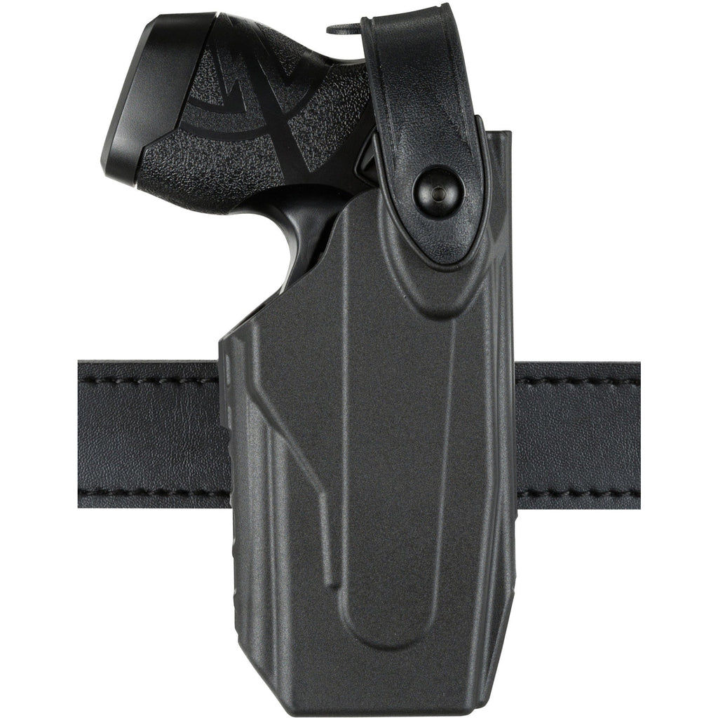 The Safariland 7520 7TS SLS EDW Holster is a holster for electronic discharge weapons (EDW) only. The holster features the Self-Locking System (SLS) allowing for a smoother, single-motion draw. The hood can only be released by being simultaneously pushed and rotated forward. This model is constructed of the innovative SafariSeven™ material, a unique nylon blend from DuPont™. SafariSeven™ is highly durable and practically impervious to the elements. It offers both strong side and cross draw carry, and features a user-adjustable belt loop for various carry angles on the belt. Fits belt widths from 1.5" to 2.25".