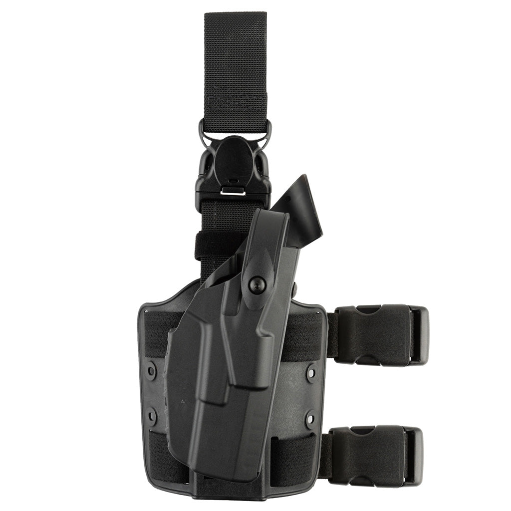 This 7005 tactical holster features the Self Locking System (SLS) rotating hood. With no snap, the SLS allows for a smoother single-motion draw and greater protection against attempted weapon takeaways. The Hood Guard is included. It features a double leg strap and leg shroud and vertical leg strap with quick-release detachable leg harness. This model is constructed of the innovative SafariSeven™ material, a unique nylon blend from DuPont™. SafariSeven™ is highly durable and practically impervious to the elements.