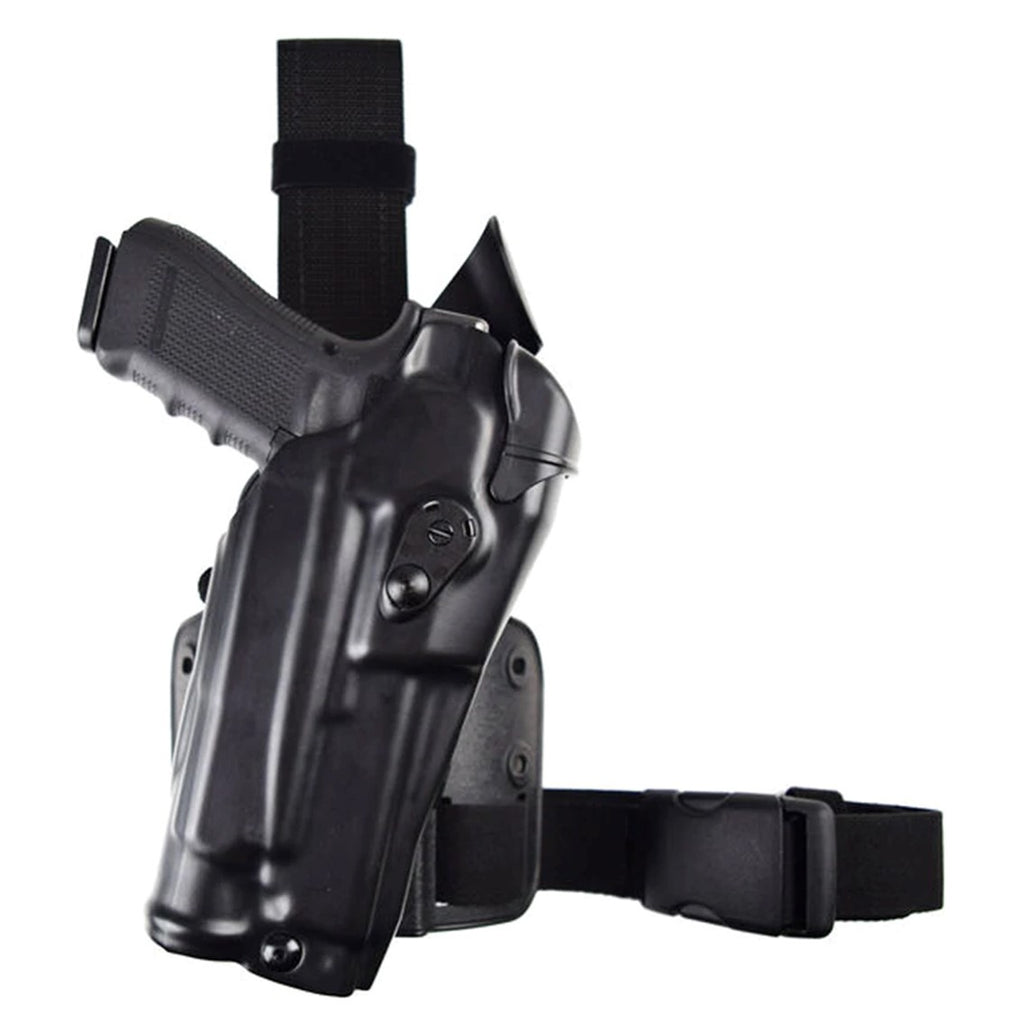 The 6354RDS-SP10 holster is specifically designed for firearms with red dot sights mounted to them. This model features the Automatic Locking System (ALS®), an internal locking device that retains the weapon in all directions providing secure retention in an open-top holster for tactical use. With ALS, once the weapon is holstered, it "locks" into place, providing an extra measure of security for the weapon. Further, the holster is completely operable with the thumb, making it very instinctive to use. And finally, once the device is de-activated a simple straight up draw can be used. Key to comfort and stability are the lightweight single leg strap and the leg shroud. SafariSuede™ lining helps protect the gun's sights and finish. ** Safariland® cannot guarantee that RDS holsters will be compatible with non-factory (Glock MOS, M&P CORE, etc.) mounted red dots. Numerous variables including depth of RDS into slide, use of dovetail, placement on slide, etc. can all affect the fit of the holster. This holster is not compatible with the Trijicon SRO optic.