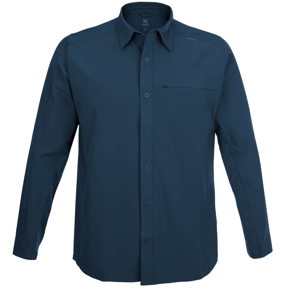 Conquer long journeys on rugged trails in style and function with the Expedition Long Sleeve Shirt. Equipped with multiple pockets—a chest zipper pocket, a zippered cash pocket on the sleeve, and two mini hem pockets—you'll have essentials at hand. It's made from durable, moisture-wicking, abrasion-resistant nylon fabric with stretch knit underarm gussets and a back panel for breathability