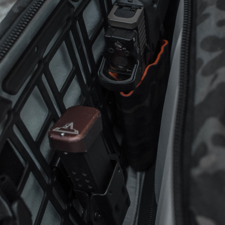 The most critical function your pack performs is to carry the gear you need efficiently and with instant accessibility. Developed in conjunction with Greg Thompson, founder of Special Operations Combatives Program, the S.O.C.P. Deployable Insert Panel provides you with an organizational platform that ensures that every piece of kit is exactly where you expect it to be, no matter what external carrier you’re deploying with. Move the panel from work-out duffle to EDC bag to any covert or overt mission pack without wasting time to position everything just right or to double-check that you didn’t leave something important behind. MOLLE-compatible components stay configured where you want them and the advantage of maintaining muscle memory when accessing gear across any carry platform can have a huge impact on mission effectiveness. Removable grip clips allow you to secure the panel to internal pack materials, vehicle seat covers and other similar surfaces. Thread 550 cord through cord-specific holes to tether two or more panels together for large load-outs or to suspend panels on vehicle seats. Organize individual panels by application, such as med kit, sidearm or long gun support, admin or other critical areas of focus.